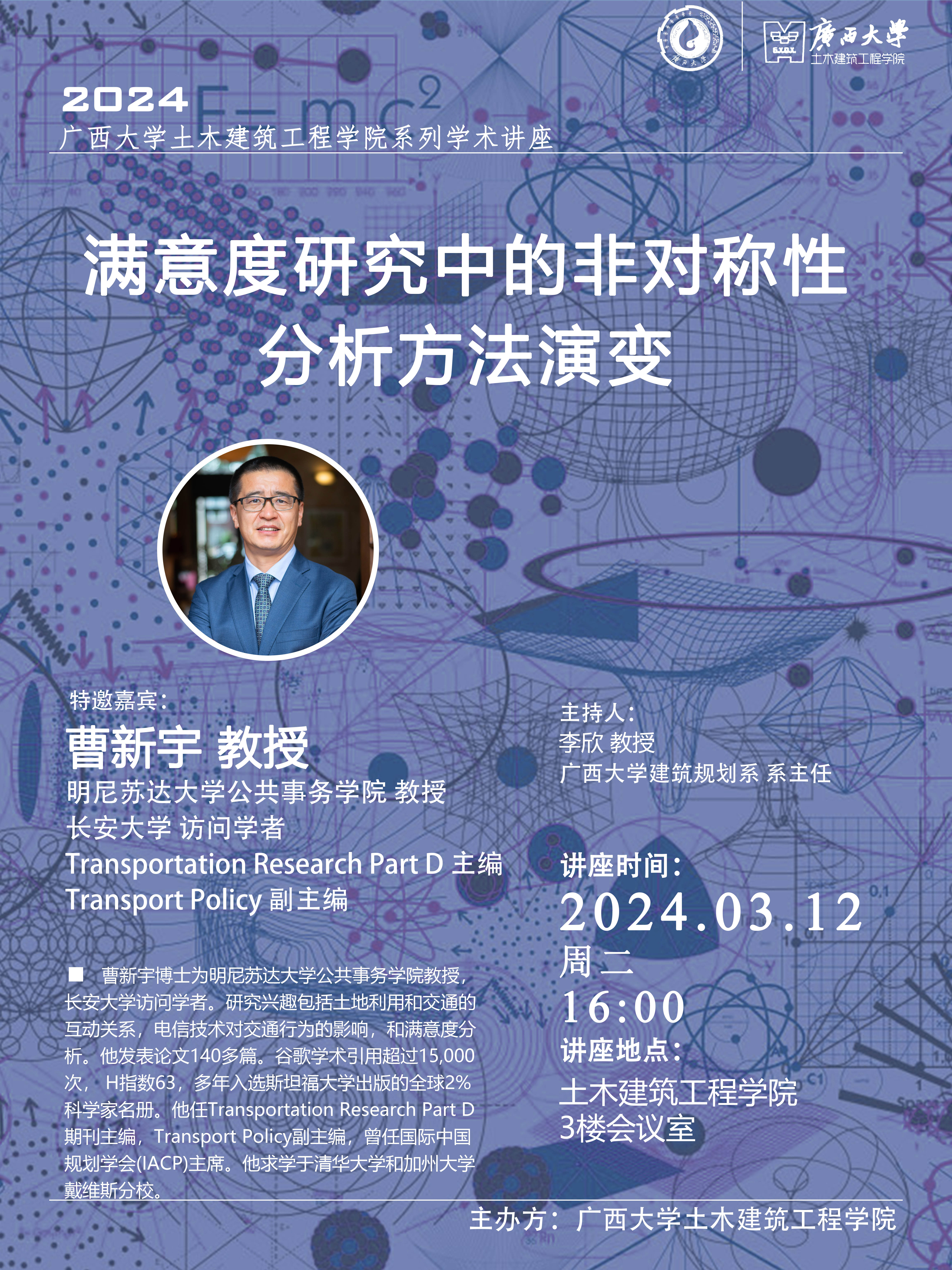 曹新宇 长安大学 教授 明尼苏达大学公共事务学院 教授 Transportation Rrsearch PartD 主编 Transport Policy 副主编