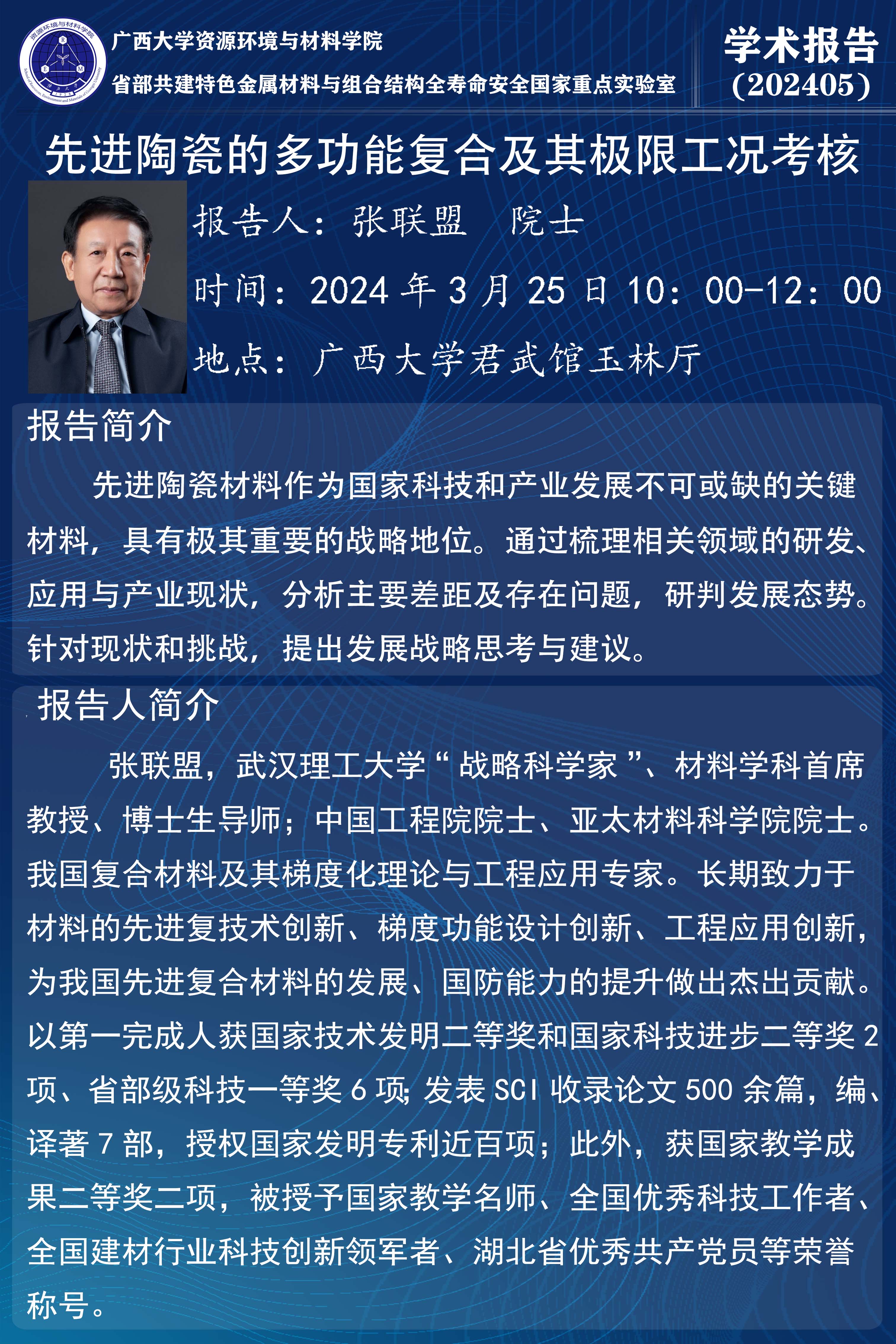 资源环境与材料学院学术报告:先进陶瓷的多功能复合及其极限工况考核