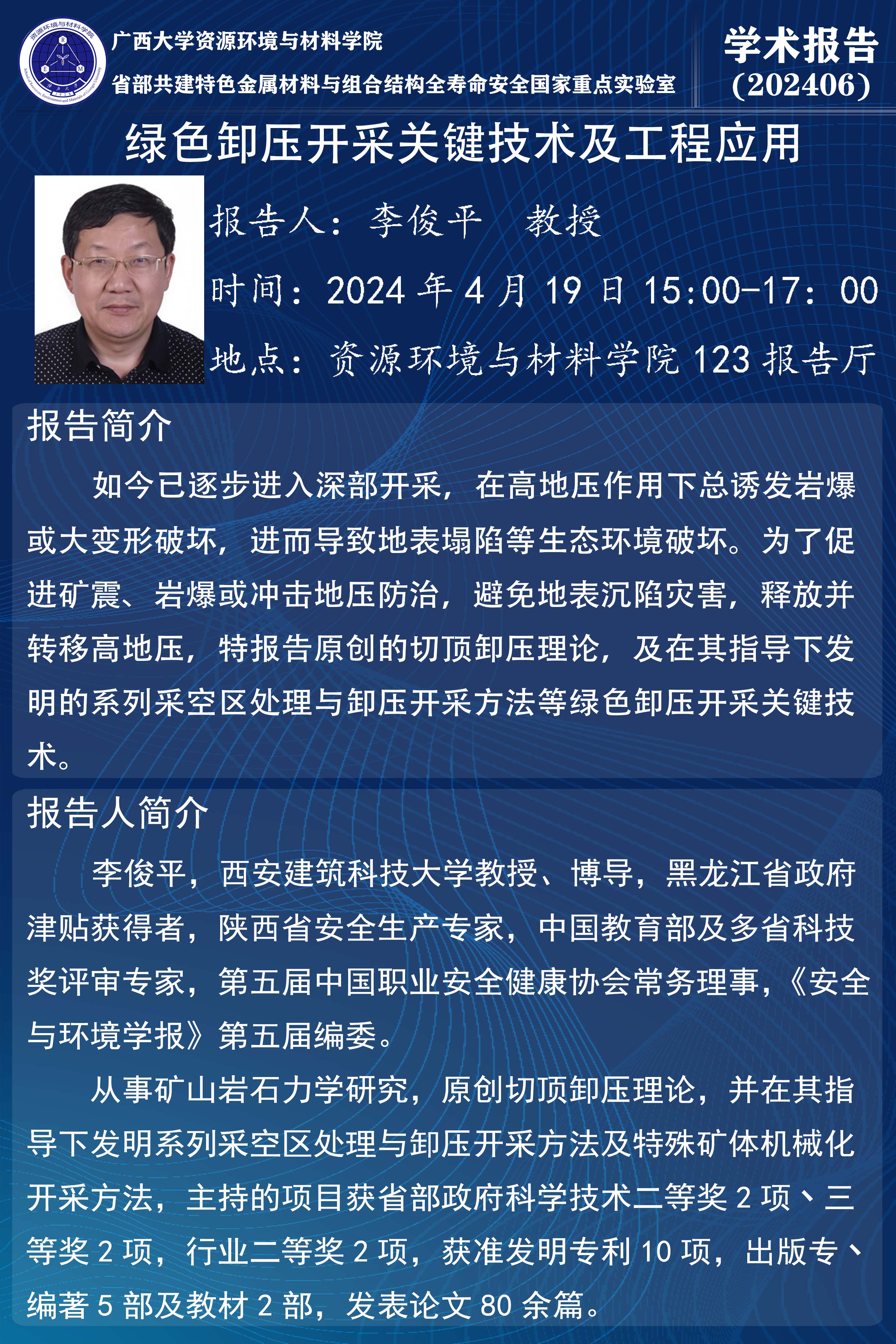 资源环境与材料学院学术报告:绿色卸压开采关键技术及工程应用