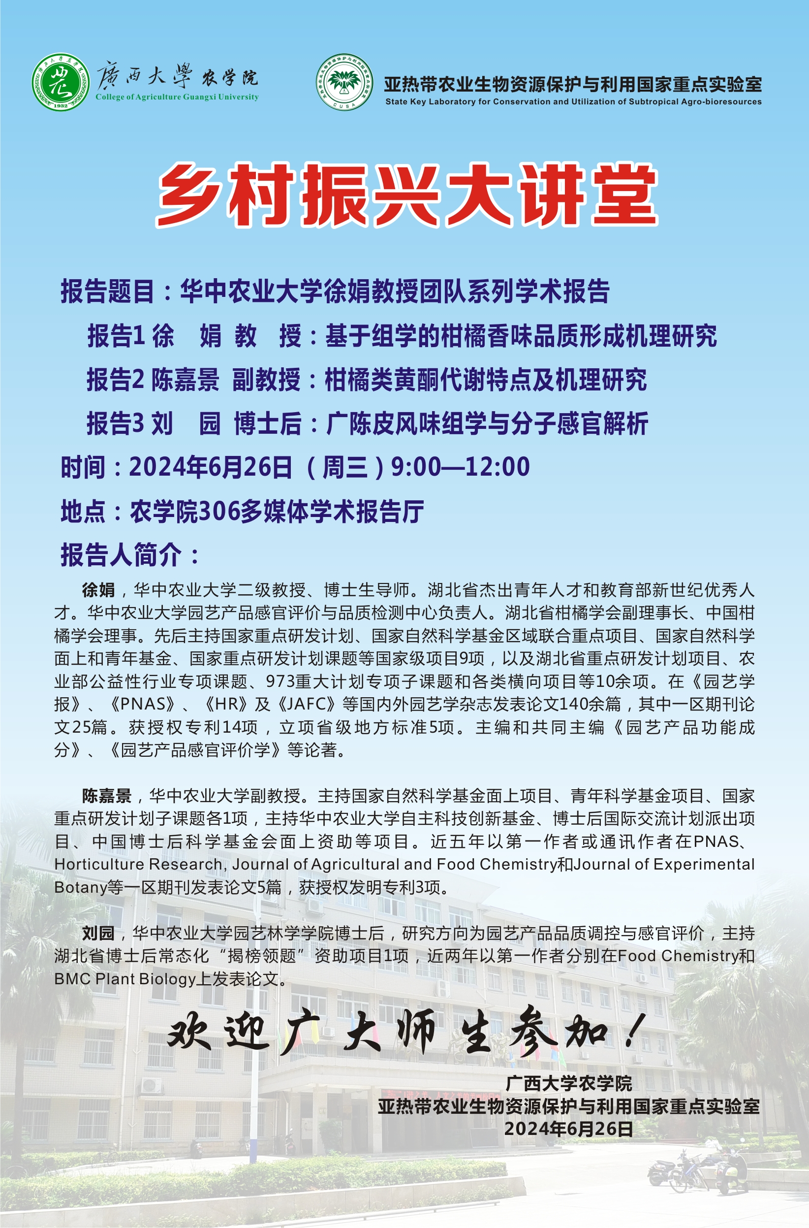 主讲人 徐娟 陈嘉景 刘园 地址 农学院306多媒体学术报告厅