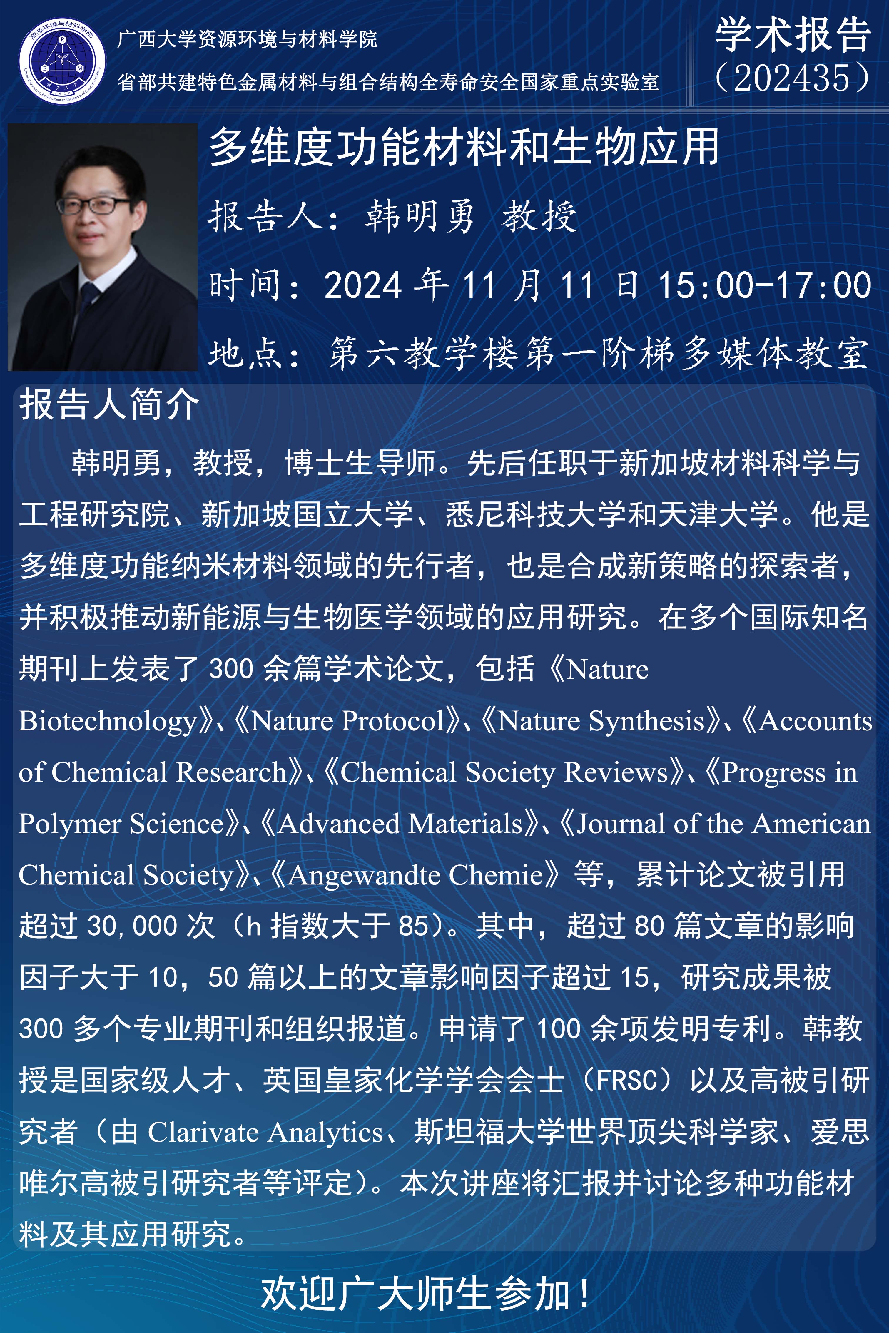 资源环境与材料学院学术报告:多维度功能材料和生物应用