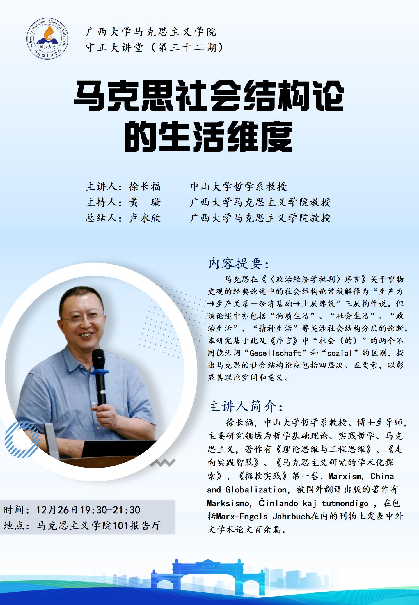 马克思主义学院学术报告:马克思社会结构论的生活维度