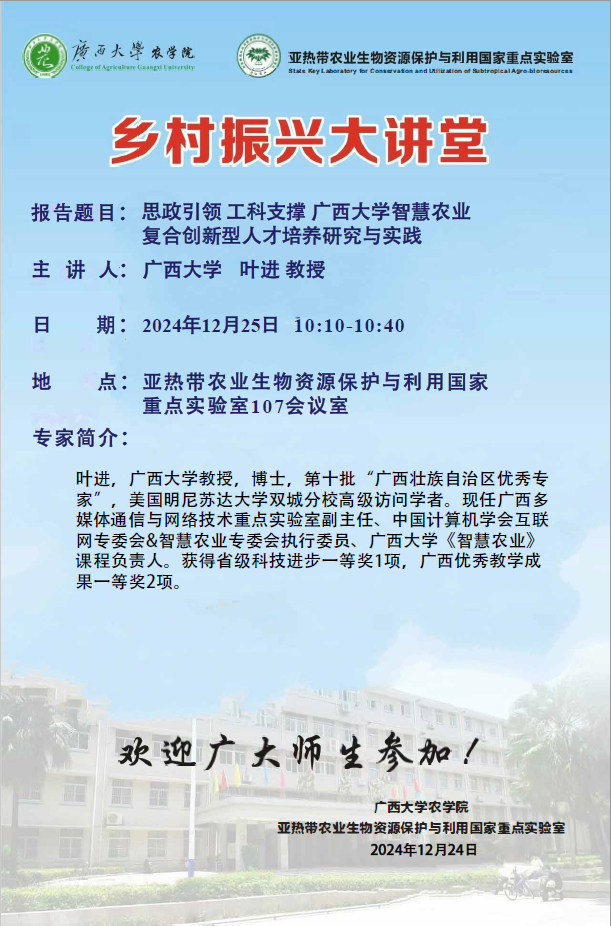 亚热带农业生物资源保护与利用国家 重点实验室107会议室
