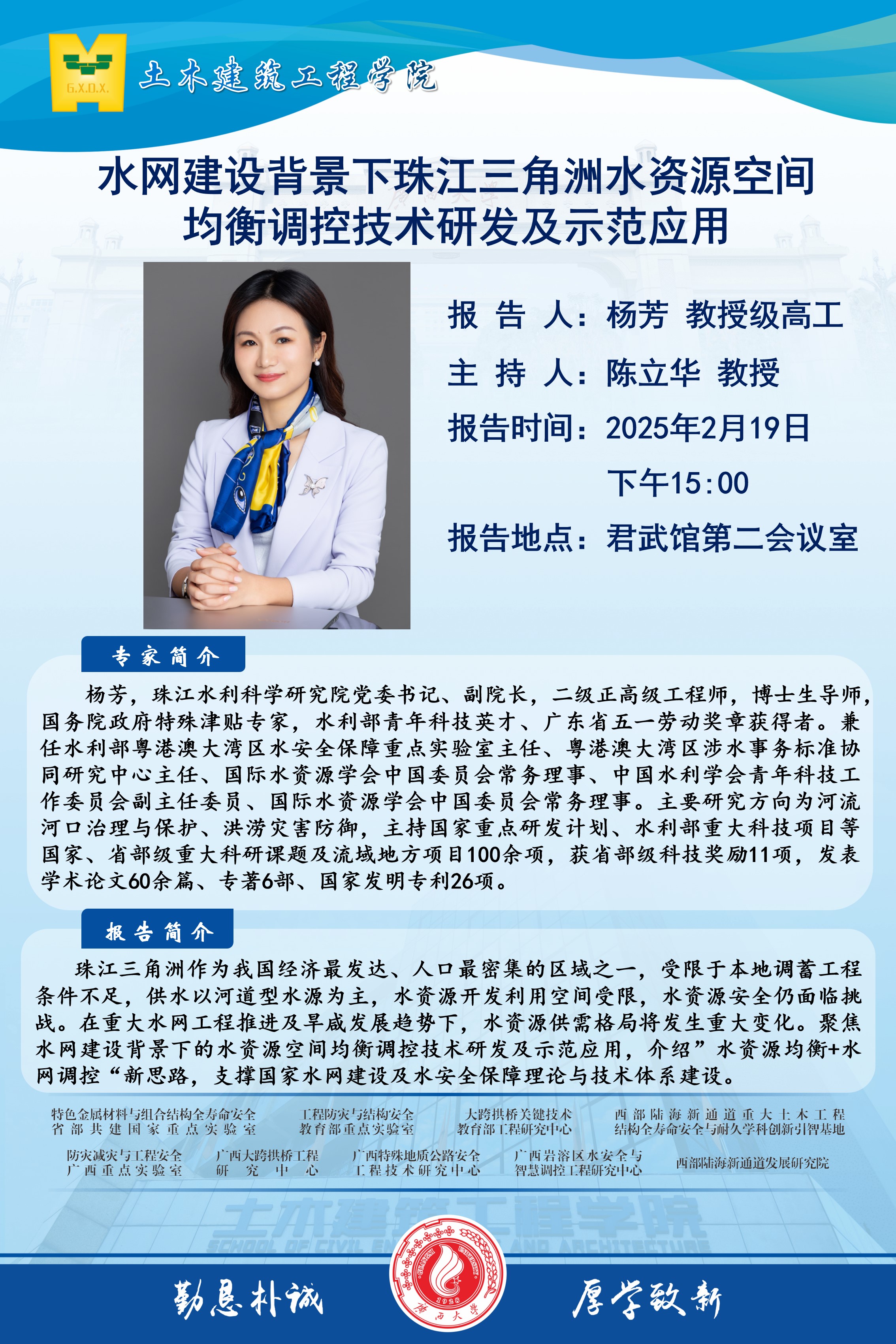 土木建筑工程学院学术报告:水网建设背景下珠江三角洲水资源空间均衡调控技术研发及示范应用