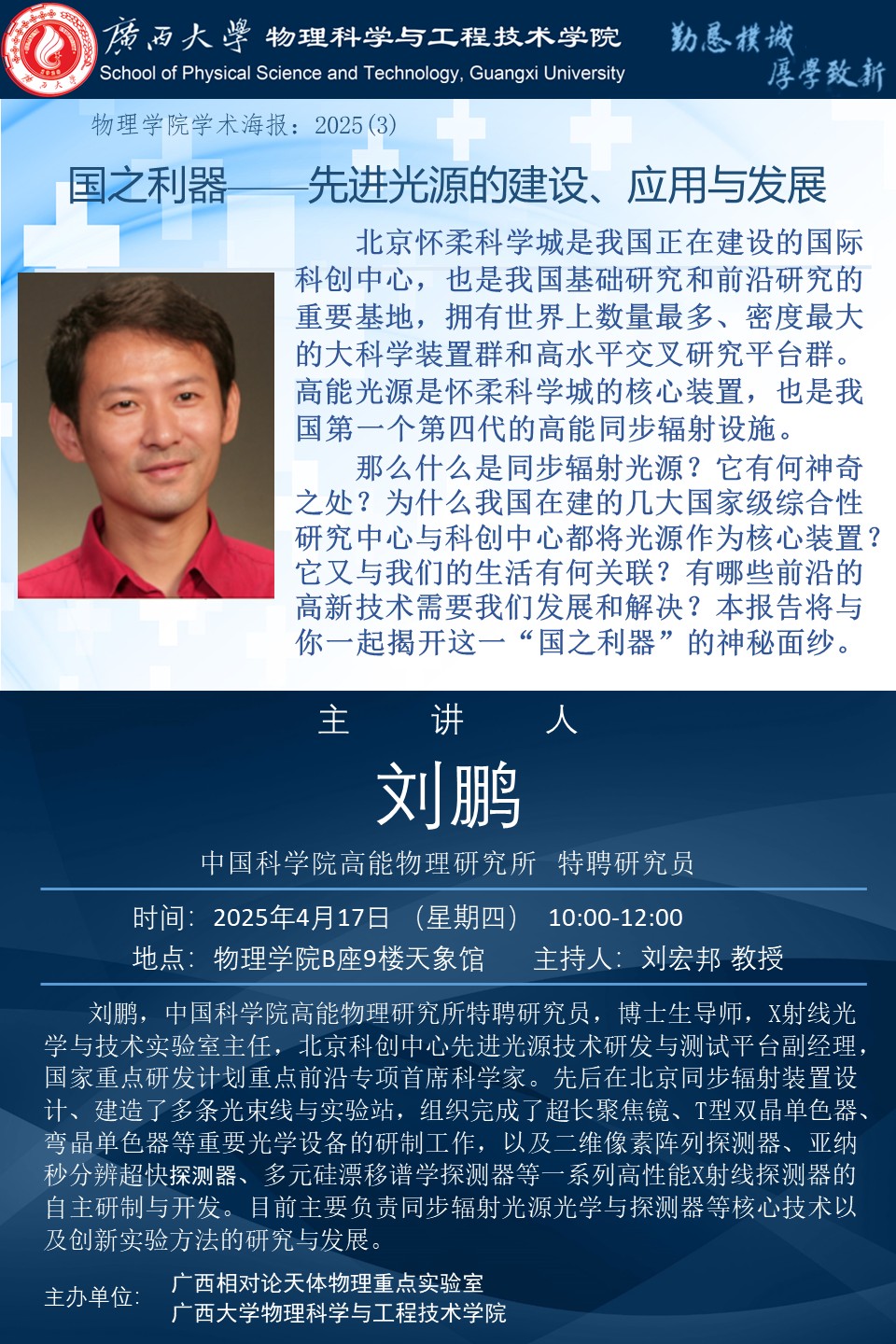 物理科学与工程技术学院学术报告:国之利器——先进光源的建设、应用与发展