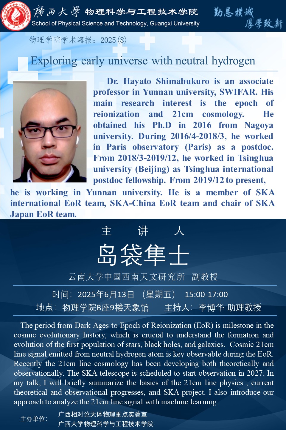 物理科学与工程技术学院学术报告:Exploring early universe with neutral hydrogen