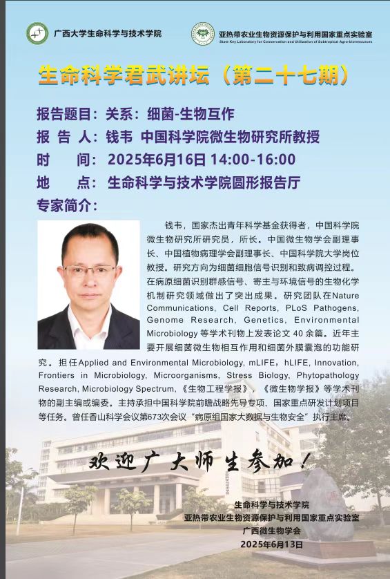 生命科学与技术学院生命科学君武讲坛第二十七期 关系:细菌-生物互作