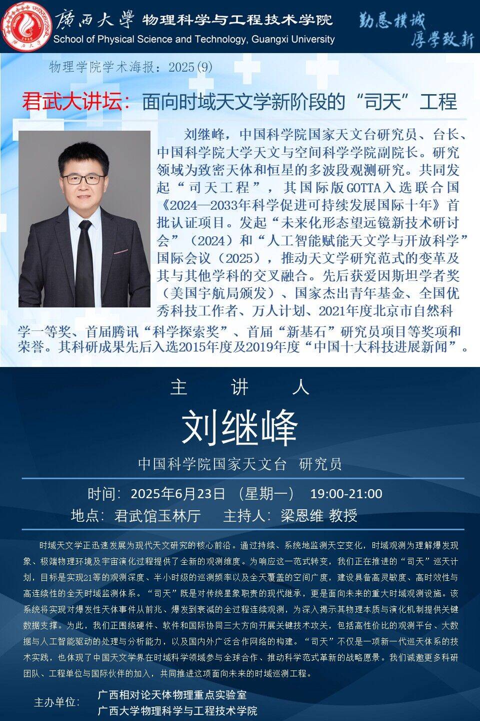 君武大讲坛:面向时域天文学新阶段的“司天”工程