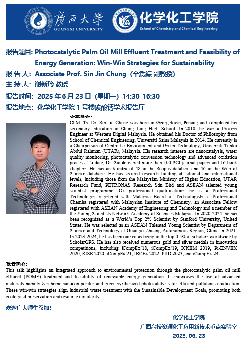 上一条:化学化工学院学术报告:Power from Pollution: Photocatalytic Fuel Cell for Clean Energy and Water