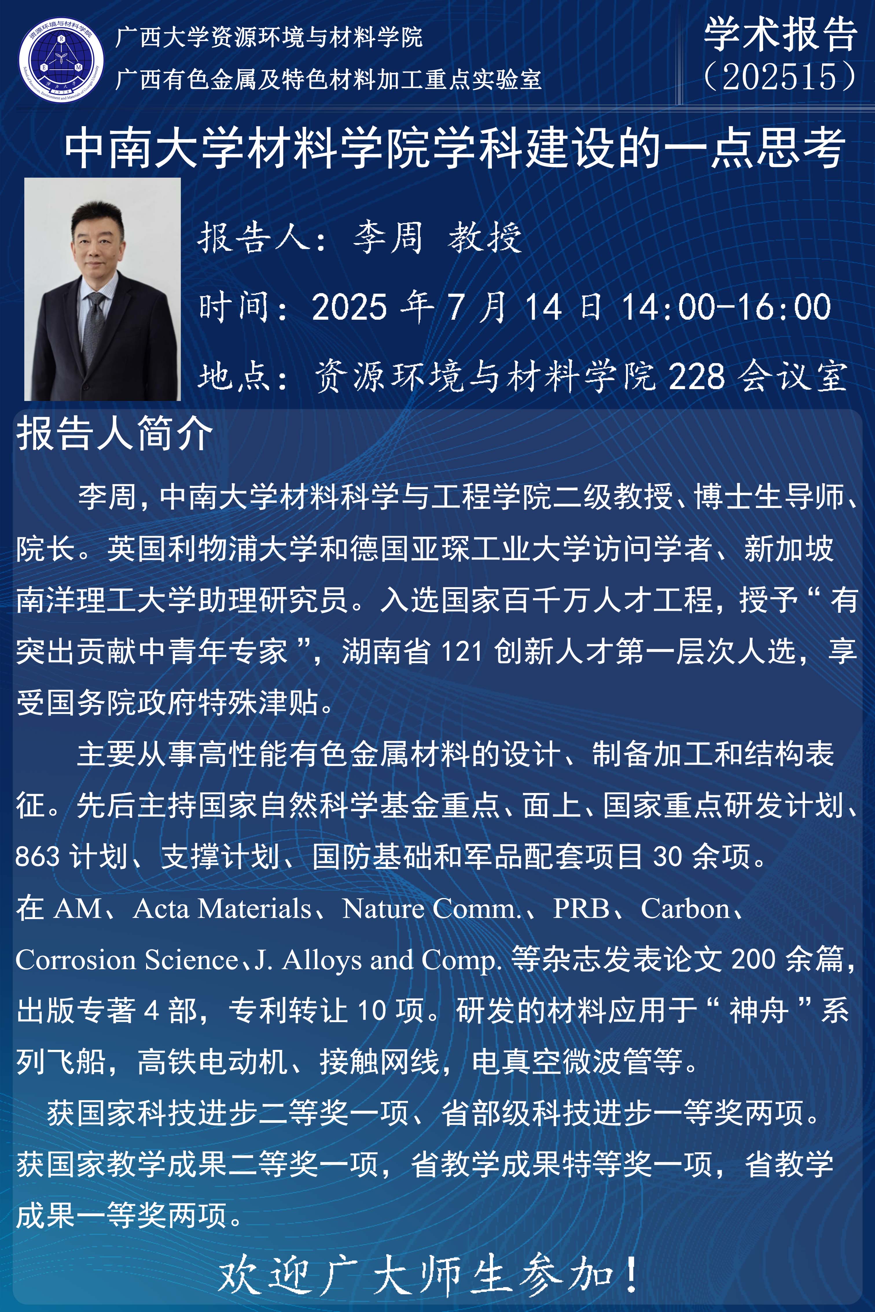 上一条:海外名师大讲堂、化学化工学院学术报告:Molecular Simulations for Subsurface Interfaces: Exploring the Role of Molecular Characteristics and Intermolecular Interactions