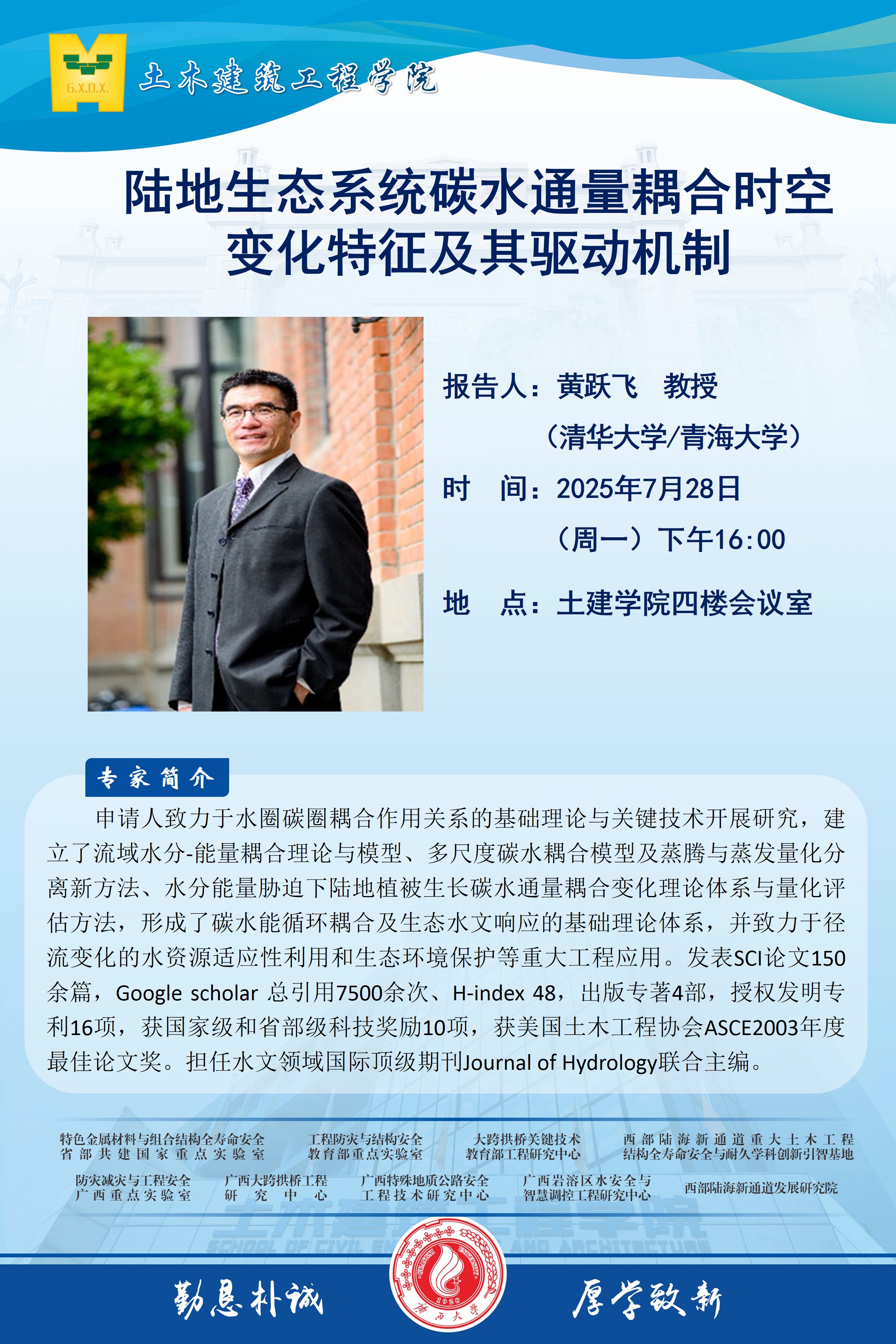 土木建筑工程学院学术报告:陆地生态系统碳水通量耦合时空变化特征及其驱动机制