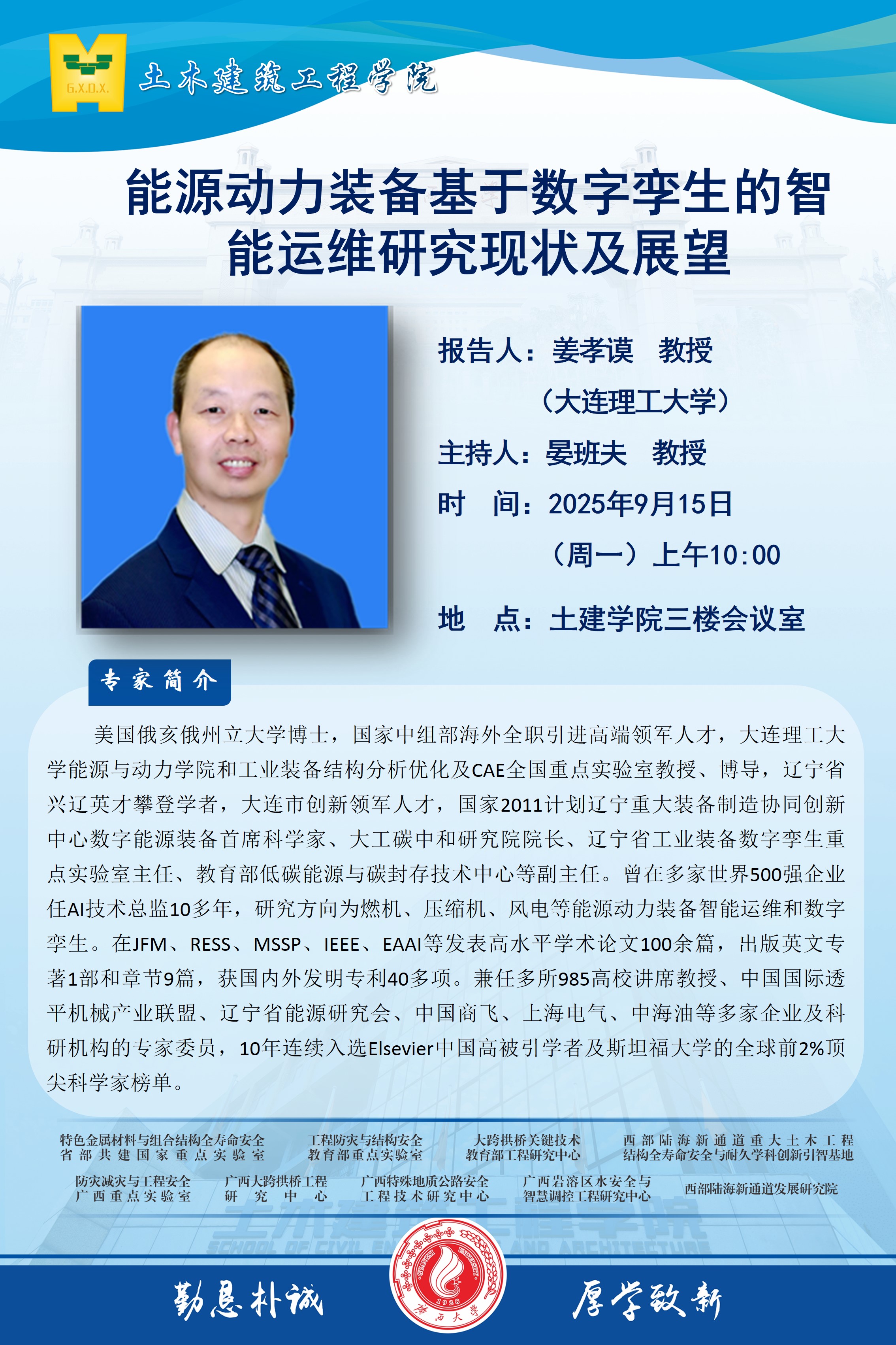 土木建筑工程学院学术报告:能源动力装备基于数字孪生的智能运维研究现状及展望