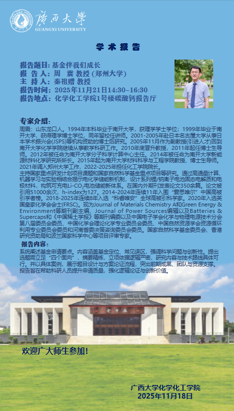 资源环境与材料学院学术报告:溶液加工有机光电材料凝聚态结构研究