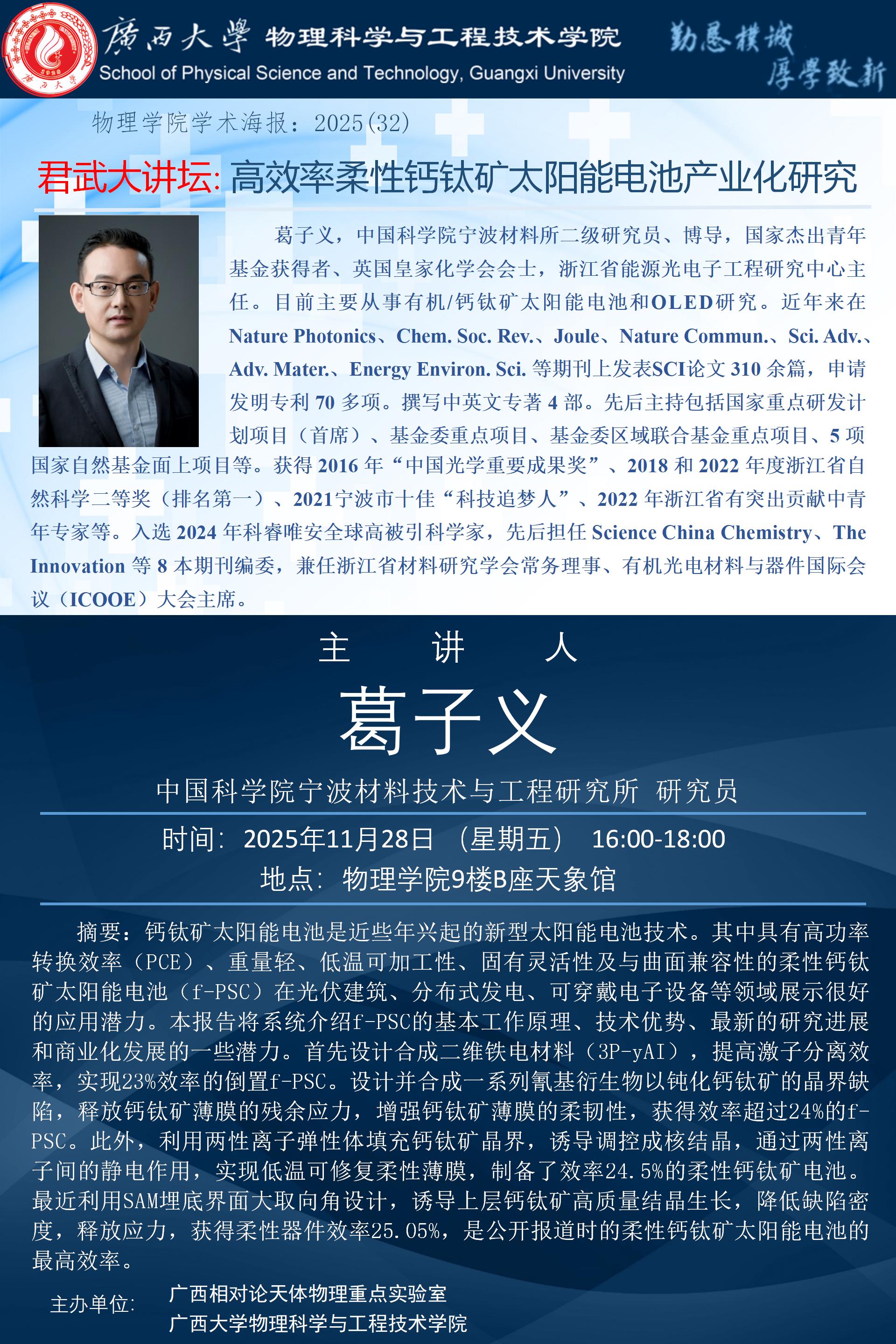 下一条:君武大讲坛、物理科学与工程技术学院学术报告:有机太阳能电池中电压损失研究