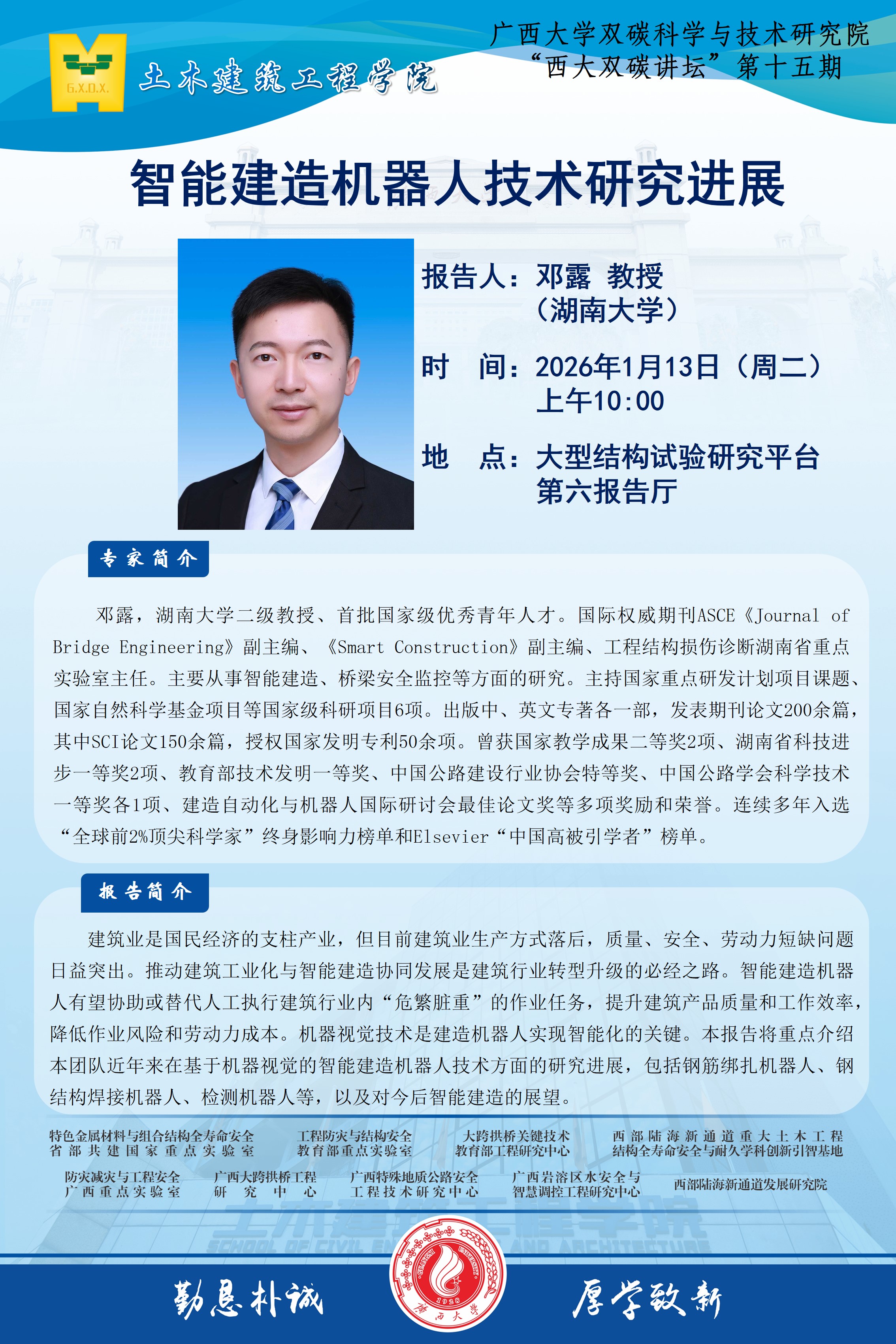 土木建筑工程学院学术报告 :智能建造机器人技术研究进展