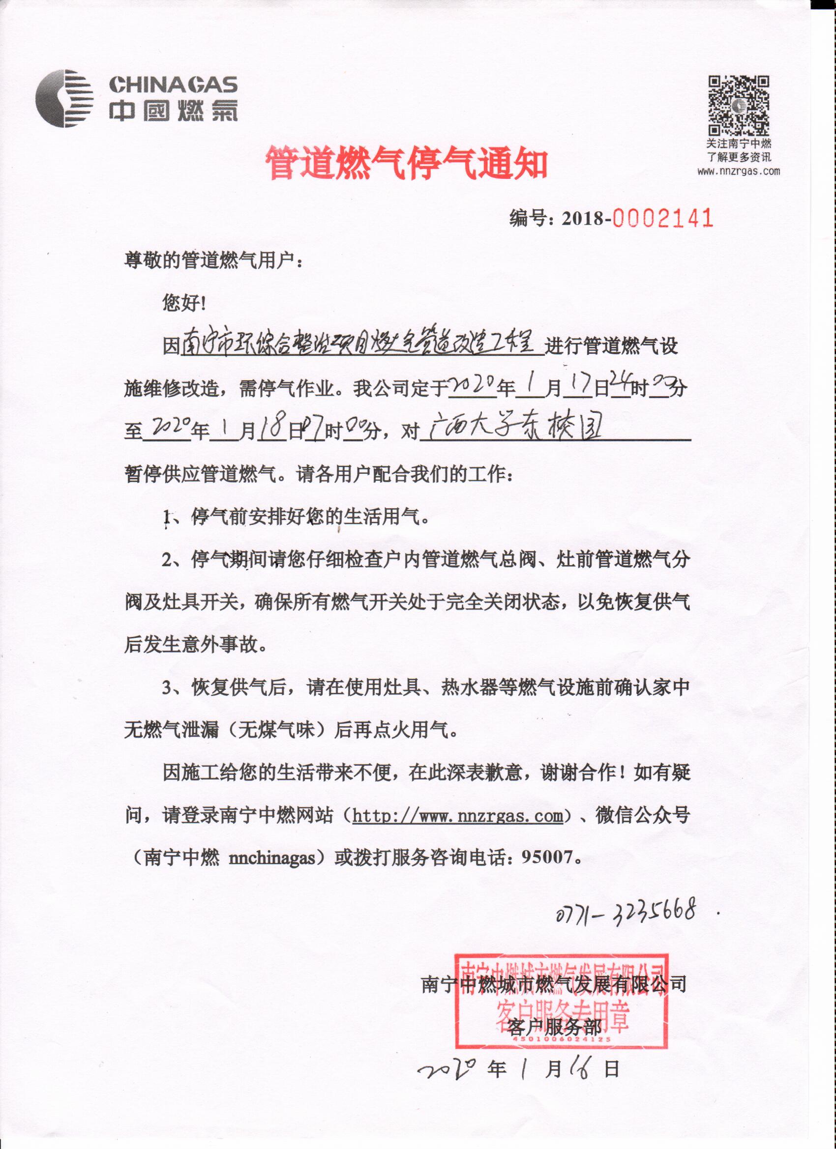 东校园停气通知